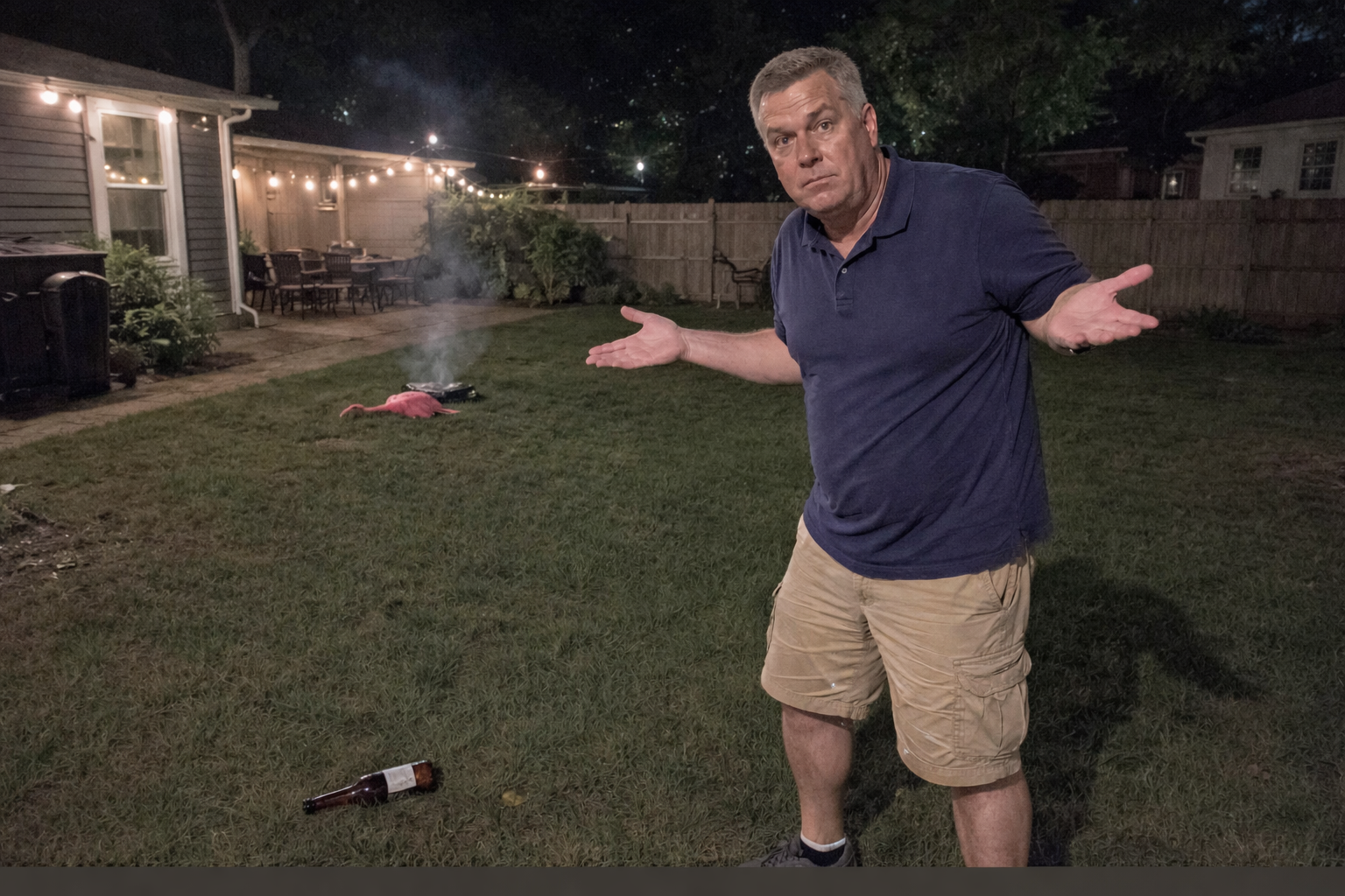 Neighbor's lawn flamingo did not survive